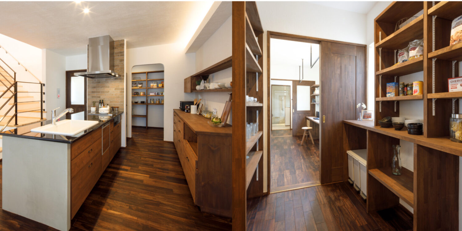 食品のストックやキッチン家電、日用品などをすっきり整理できる、家事動線を考えた造りになっています。