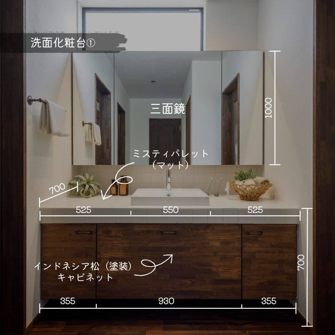 洗面化粧台① シンプルで上質な三面鏡タイプ