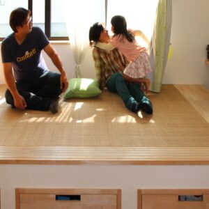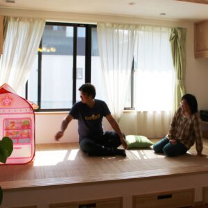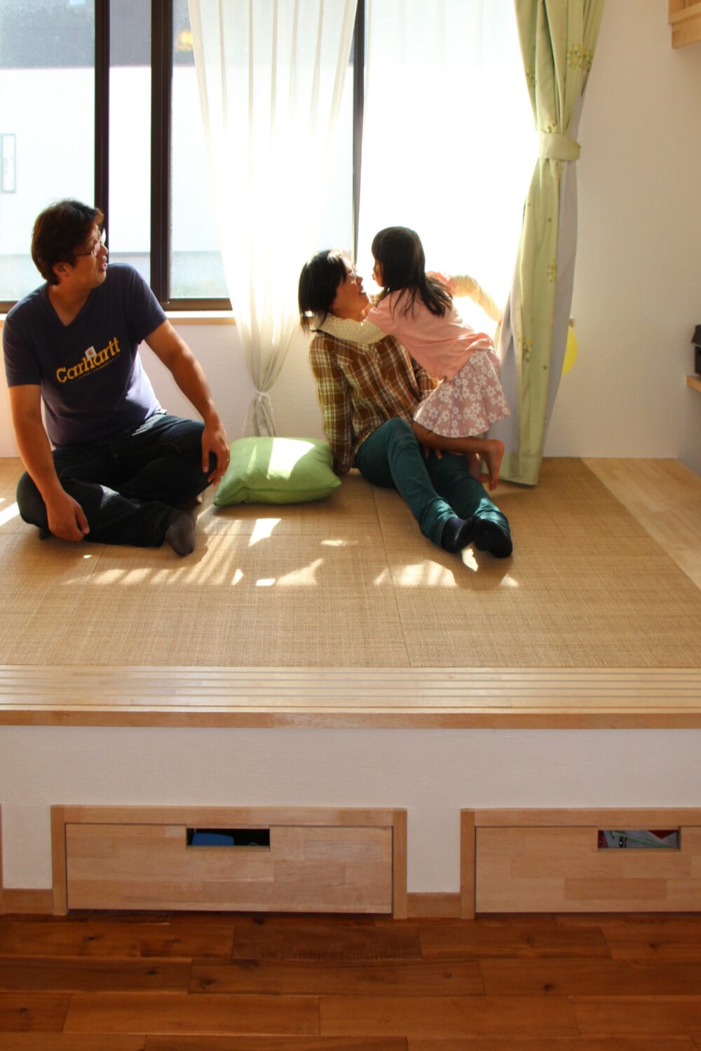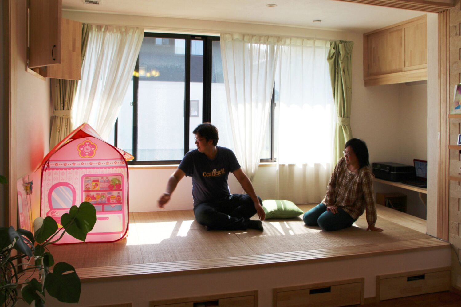ご主人: 私は、小上がりの畳スペースです。仕事から帰ってきてゴロンとリラックスできる場所が欲しかったんです。小上がりの部分に収納も付けてもらったので、腰掛けることもできますし、部屋全体が広く感じられて大満足です。