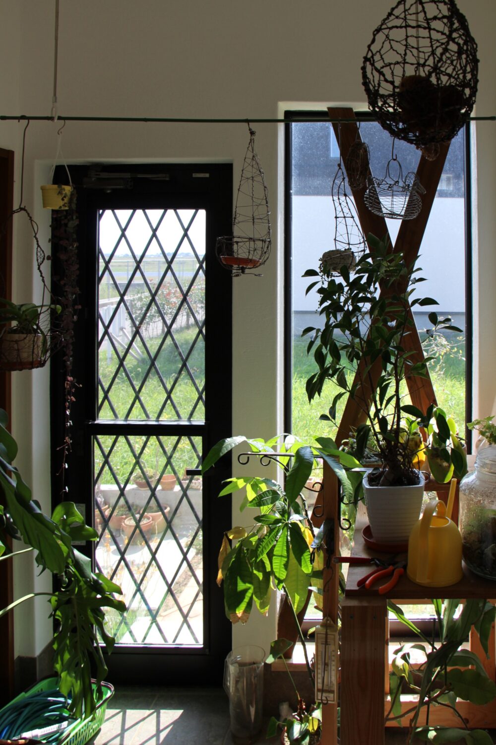 奥様: 私は土間ですね!マイホームを建てるなら「ガーデニングありき」で考えていました。イワコンさんの完成見学会で、ワンちゃんのために広い土間を設けているお宅を拝見して、「これだ!」と思いました。土間でガーデニングの作業をしたり、植物を越冬させたり、ベンチを置いてくつろいだり…。夢だった、自然を身近に感じる暮らしが叶っています。