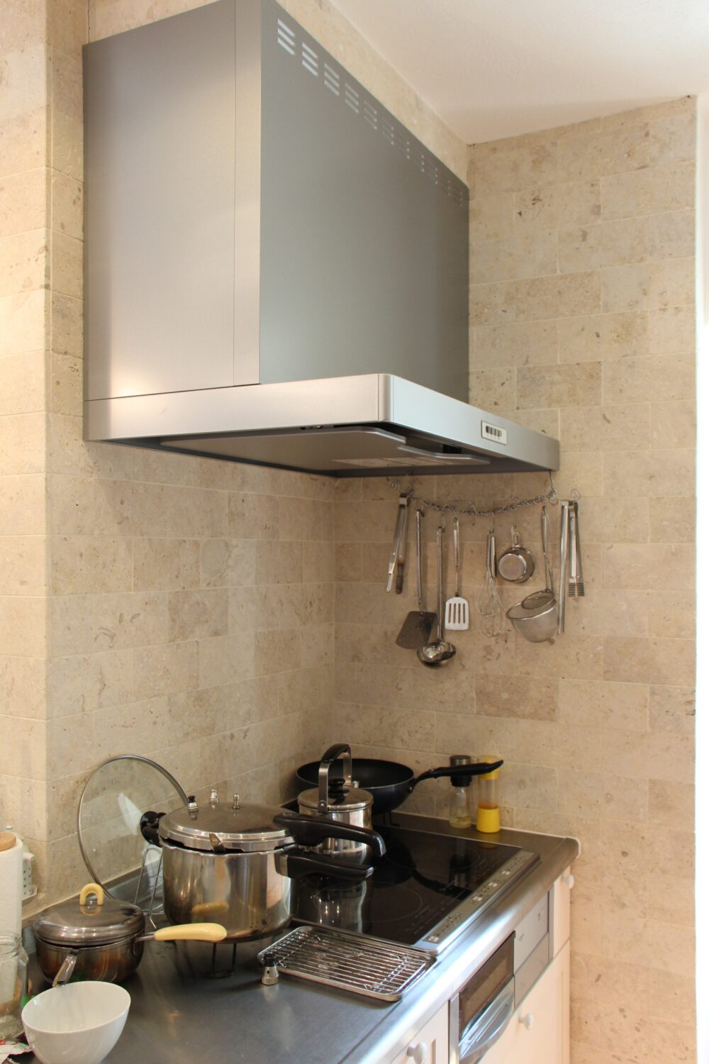 奥様: あ、石屋根は雨音が静かで良いです。それと、キッチンのコンロ周りのパネルを天然のコーラルストーンにしたのですが、これが本当に良かったです!おしゃれなのに、油汚れもサッと拭くだけでキレイになるので、手入れがすごく楽。みんなに勧めたいくらいです(笑)。