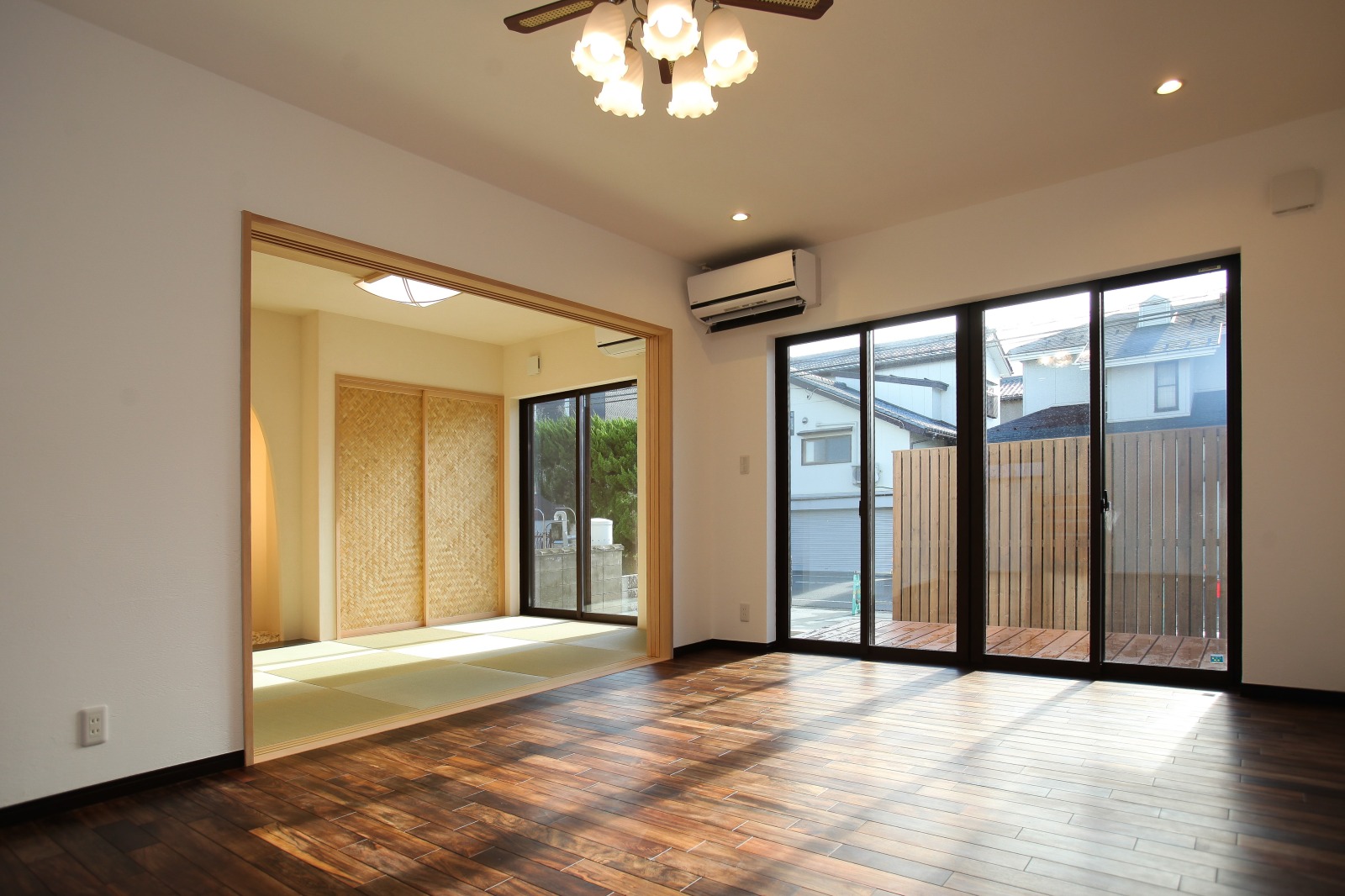 床材 | 無添加フローリング(アカシア柿渋塗装、シンゴン) |