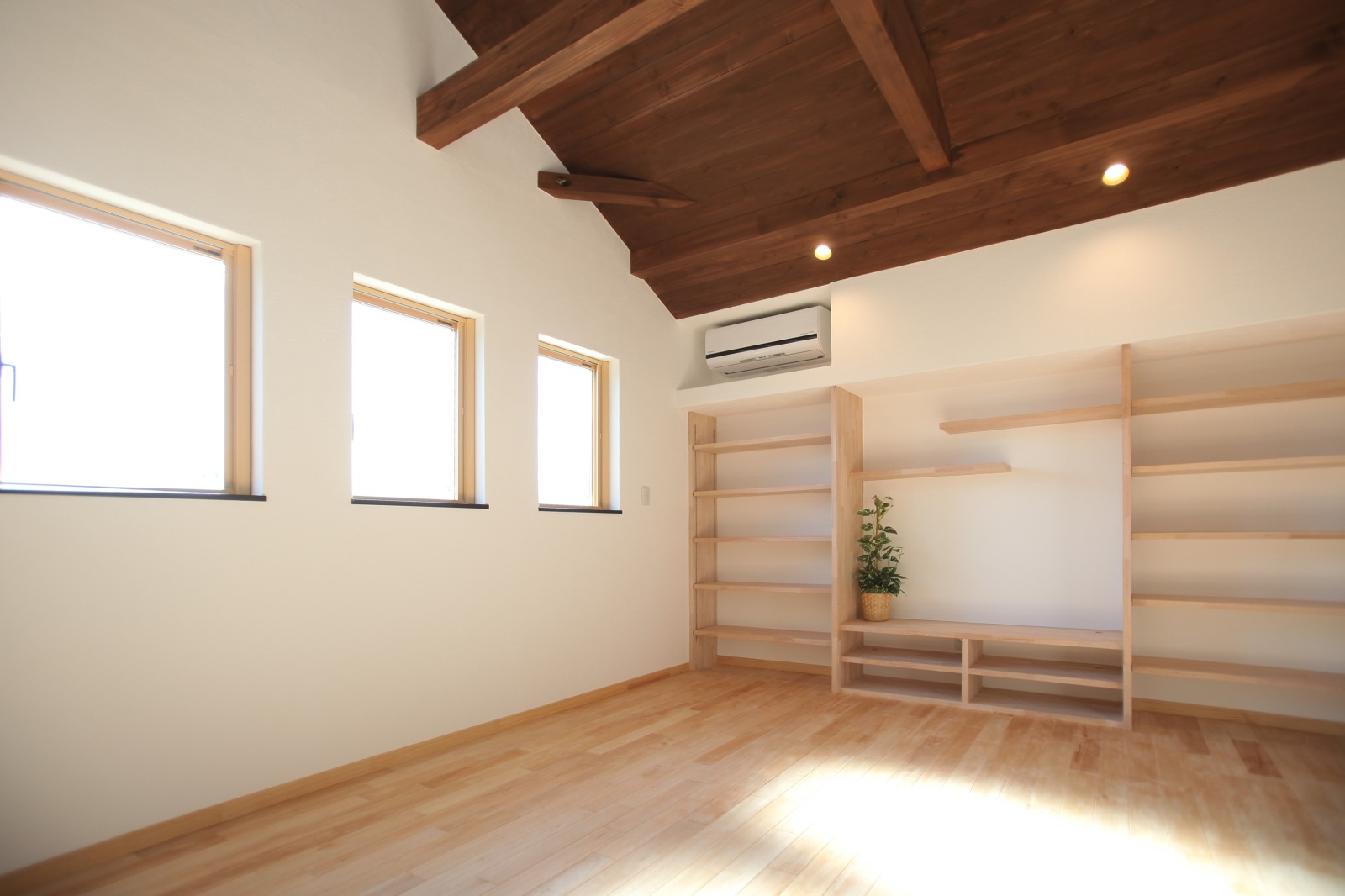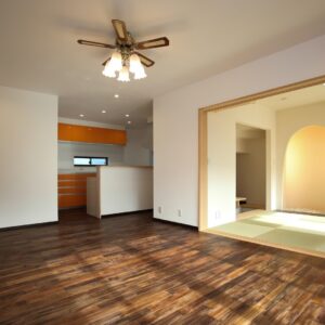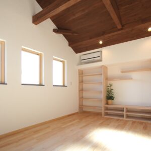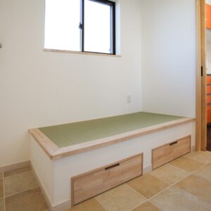 また、キッチン横には家事室や食品庫を設け、効率的な家事動線を実現。2階には主寝室のほか、ゲストルームも確保し、家族の成長やライフスタイルの変化にも柔軟に対応できる設計となっています。
