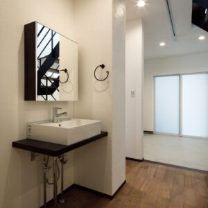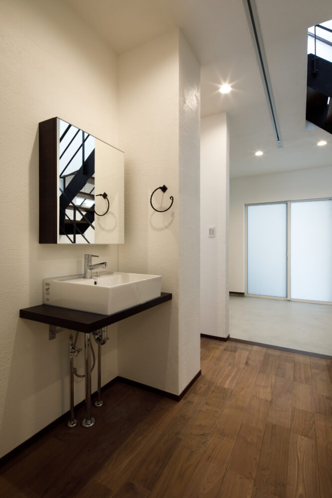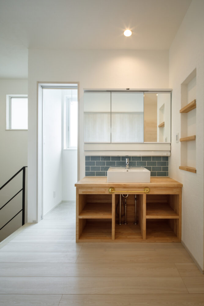 2階はご家族のプライベートゾーンとして、明るいフローリングやクロスでそれぞれの好みを反映。お子さまたちがタイルを選んだ造作洗面台も、家族の個性が光るお気に入りの場所となっています。